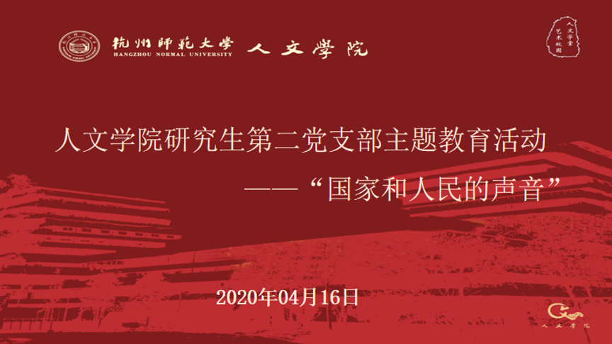 4月16日, 人妖 研究生第二党支部于线上召开“听见红色的声音”主题教育活动,支部书记刘华章、主讲人唐宾篲及支部16位党员悉数到场。疫情当前,爱国教育和大爱教育尤为重要。本次主题教育活动内容新颖别致,以《黄河大合唱》作为学习主线,旨在带领支部党员同志于激昂雄壮的乐曲中领略抗日战争时期全民抗战的家国大爱、以爱国主义为核心的民族精神。