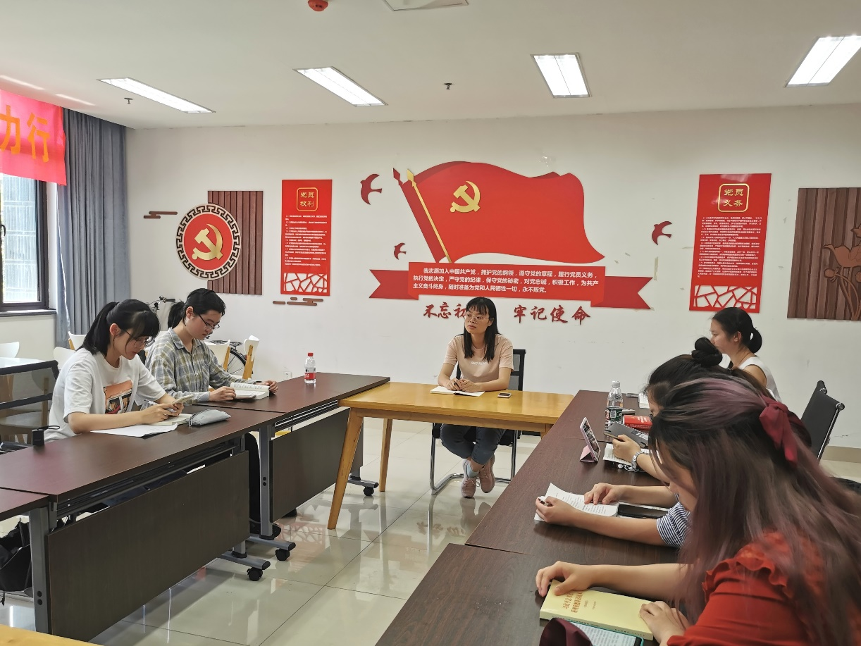 各党小组会议贯彻学习了党史学习教育“四本书”(即《论中国共产党历史》、《毛泽东、邓小平、江泽民、胡锦涛关于中国共产党历史论述摘编》、《习近平新时代中国特色社会主义思想学习问答》、《中国共产党简史》)。即将毕业的正式党员陈洁,在学习《习近平新时代中国特色社会主义思想学习问答》的过程中感悟颇多,她把握了习近平总书记提出的“四个意识”“四个自信”和“两个维护”,并提出可以将其作为辅助读物,进一步读原著、学原文、悟原理,真正学深悟透中国共产党的科学理论和思想。