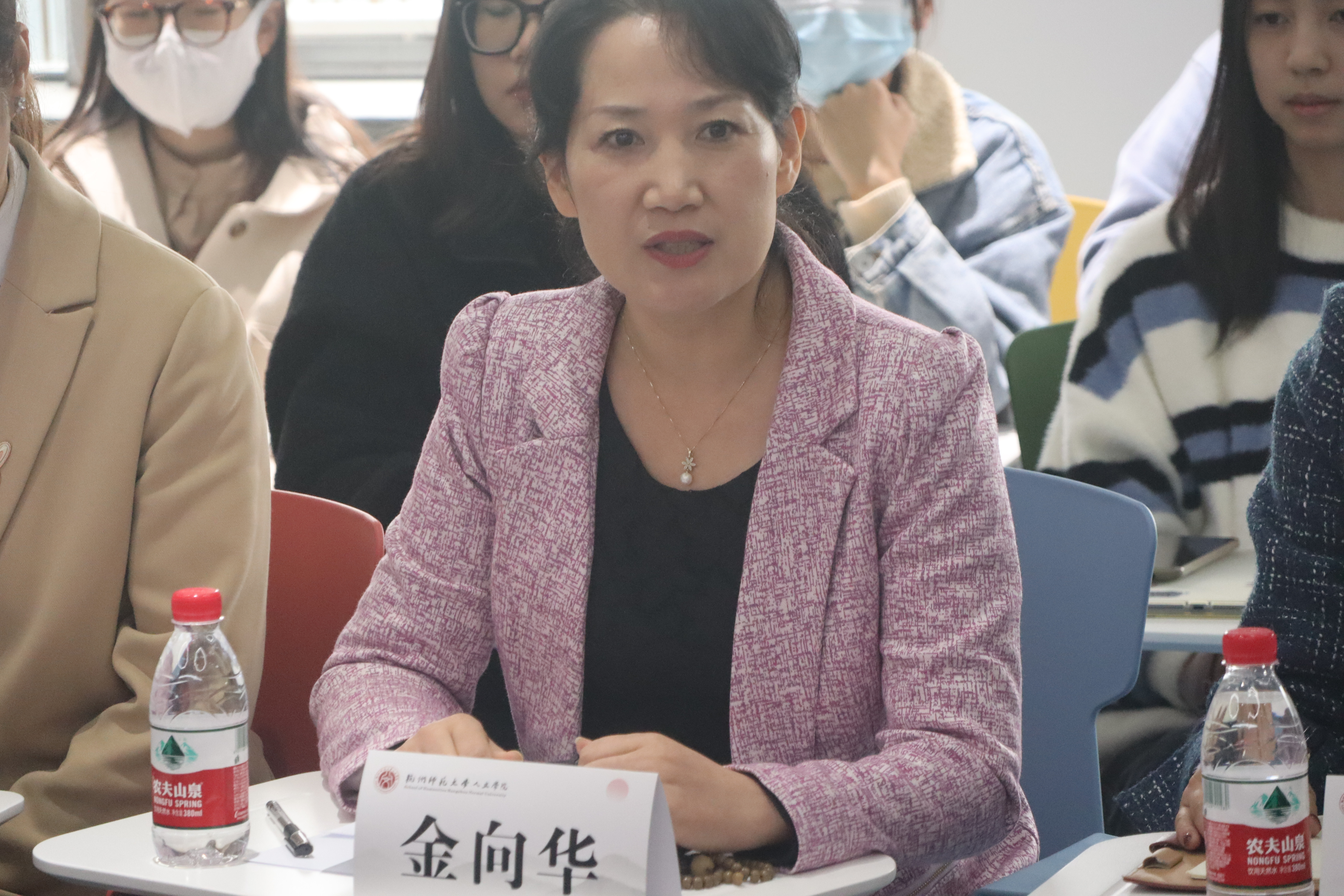随后,校党委学工部部长、学工部(学生处)、团委联合支部支部书记金向华与本科生第一党支部党员展开座谈并进行总结发言。金向华部长首先对两支部结对共建表达美好希冀。而后,她从“坚定理想信念,牢记党员身份”、“爱国、爱校、爱院”、“以学习为本”三方面对 人妖 本科生第一党支部学生党员作出殷切期望。最后,她针对本科生第一党支部学生党员提出的思考和建议指出,学校、学院会尽全力提供毕业生就业帮扶与支持,学生本身也需要不断磨练自身技能,积极转变就业观念。