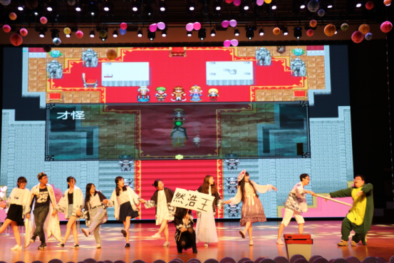 在主持人充满诗意的开场白之后,由stand轮滑社、PIC电子科技协会带来的节目《追光者》正式拉开了本届联合社团文化节晚会的帷幕。随后,两院各社团轮番登台,为大家演绎了一个个满含悠扬古韵又洋溢现代激情的节目。流霞剧社《作家之死》扑朔迷离的故事情节带大家走进了精彩的话剧世界;国服十佳歌手何杭佳、伊热夏提倾情演绎的《当你老了》让大家在温暖的歌声中感受时光的悄然流逝;大艺团街舞队的《PANGPANG》燃爆全场;嘉礼华服社的原创古风舞台剧《蓼莪》和繁星文讯社的诗歌朗诵《爱》从古今对比视角向我们展示了父母之爱的无私;校十佳歌手洪倩倩和 人妖 的十佳歌手伊凡苏、张琦带来的歌曲串烧赢得了观众的满堂喝彩;球类协会、计算机科技协会带来的舞蹈串烧《群魔乱舞之谁还不是个小仙女》也吸引了全场观众的眼球;SunShine动漫社带来的音乐剧、宅舞组合节目《王者演绎》向同学们展示了具有独特魅力的二次元文化;DCF创业发展协会倾情演唱的歌曲《YOUNG》点染了全场观众的青春年华;晨风网络文学社、麓溪书画社带来的歌曲《苔》使同学们静心感受生命的生长。最后,由两院社导部长及干事带来的节目《白雪公主和七个小矮人》赢得满堂喝彩,晚会在一片欢声笑语中落下帷幕。