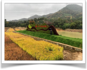 跟随讲解员的脚步,大家来到了“在希望的田野上”的大型展牌前。放眼望去,一个如诗如画的棠棣呈现在面前,在蒙蒙细雨下显得如梦如幻。彩色水稻、千亩花田、兰花温室、整洁宽畅的民居、随处可见的“乡村振兴、诗画田园”的宣传牌,无一不在诉说着“人勤春早”的棠棣精神。