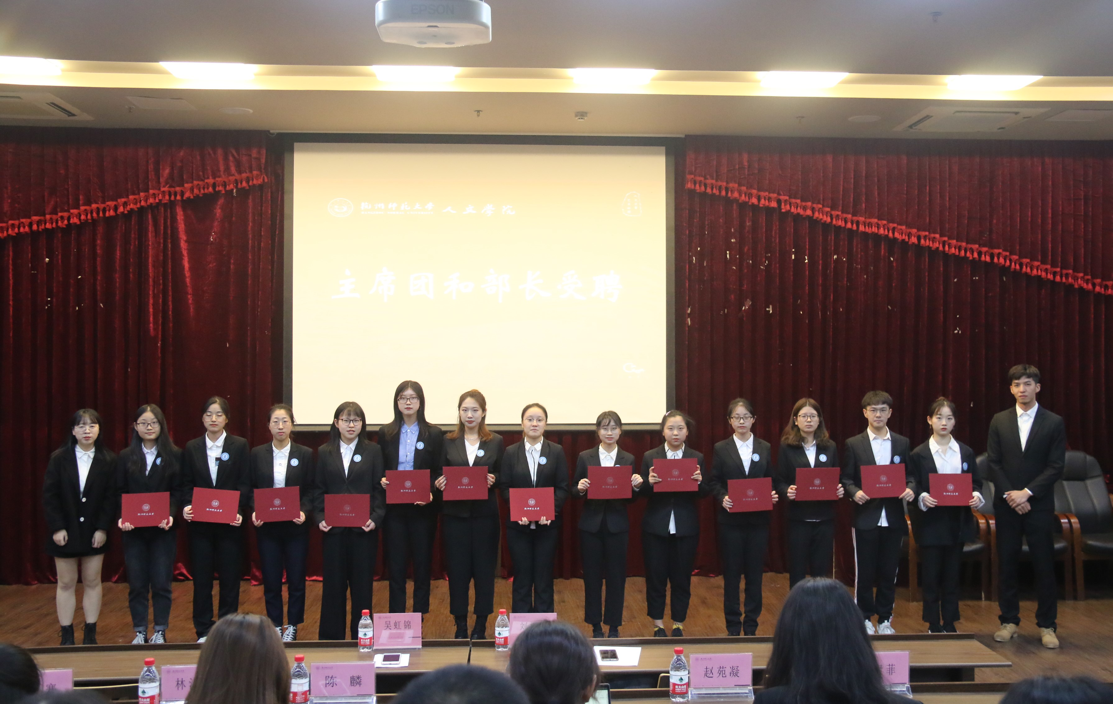 11月16号晚, 人妖 第七届团委、第二届青年志愿者协会、第十九届学生会、第二届全媒体中心干事转正仪式暨主席部长受聘仪式于恕园23号楼弘毅厅顺利举行。 人妖 团委老师刘华章老师应邀出席大会, 人妖 团委学生会全体成员正装参加。
