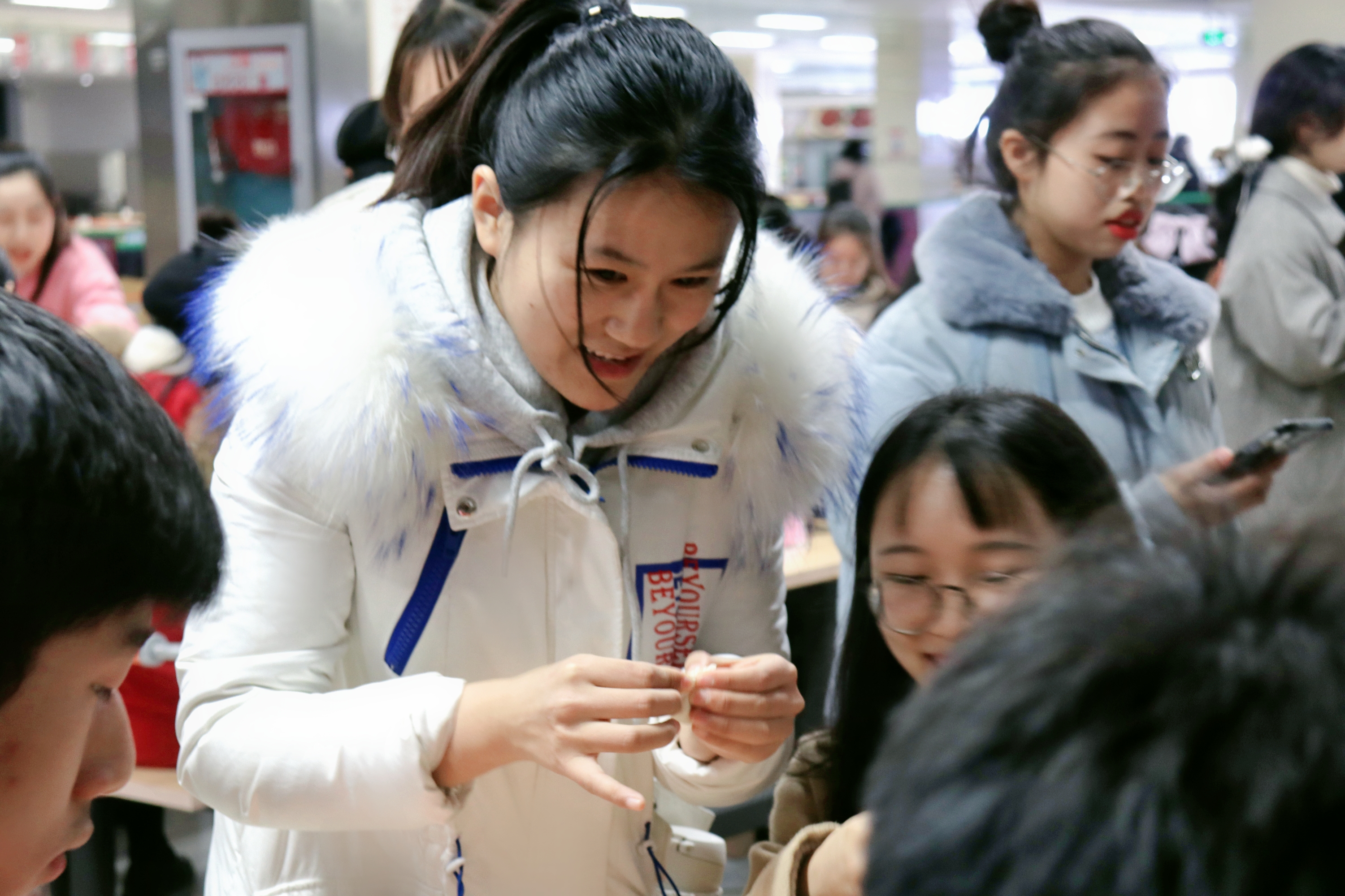 活动包含三项比赛,分别为“比赛包得多”“创意大赛”“最美饺子大赛”。活动开始,同学们信心满满、干劲十足,纷纷分组开始动手制作饺子。来自五湖四海的同学们在制作过程中分享经验,交流各地冬至不同的风俗,迅速融为一团。比赛过程中气氛融洽和谐,大家的包的饺子各具特色,种类繁多,造型新颖。通过评选,选出了冠军。此外,勤工助学中心还为同学们准备了特制的“幸运饺子”。