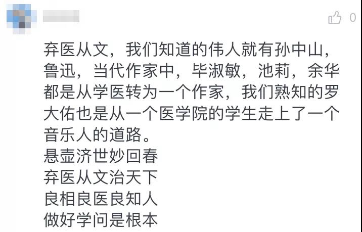 如今的大环境下,“实用主义”的专业更受欢迎。医学院的学生要转中文系,其实是很让人感叹的。他把这封信拍照发到朋友圈,有了不少评论点赞:“这是要弃医从文啊!”