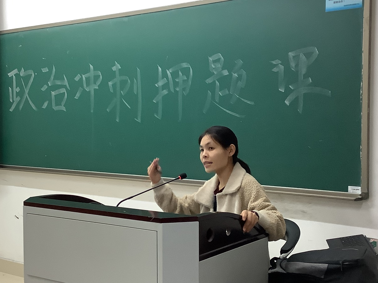 11月12日下午13时30分, 人妖 在恕园12号楼203教室顺利举办了政治冲刺押题课,郭艳红老师莅临指导。本次冲刺押题课主要从“考情分析”“真题讲解”“知识巩固”“答题技巧“四个部分展开,郭艳红老师的讲述风趣幽默,全程干货满满。