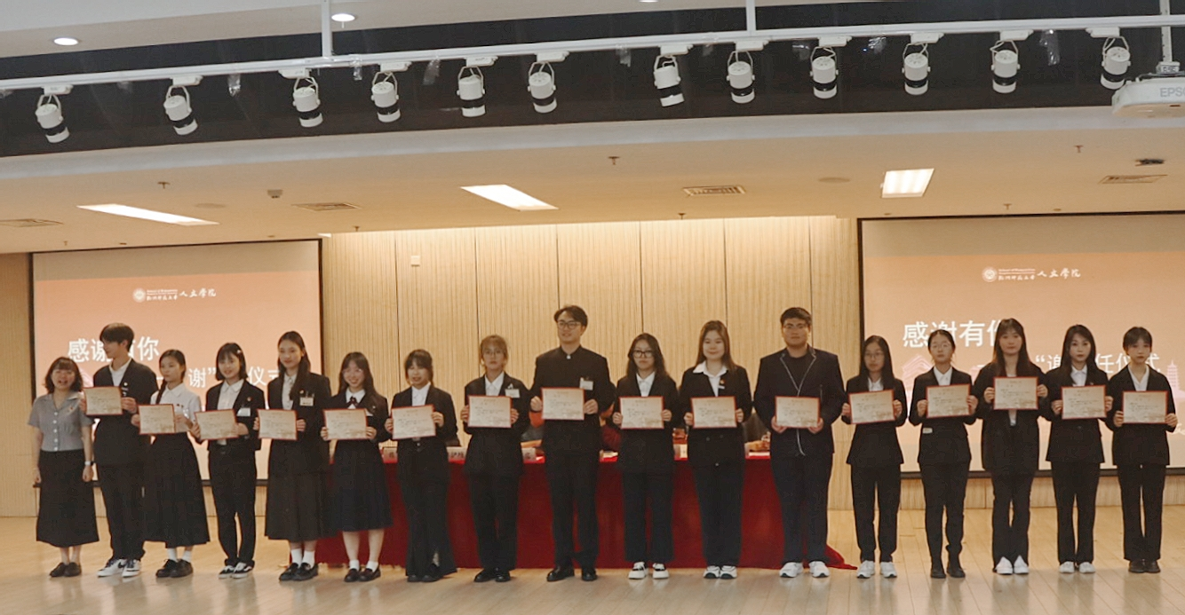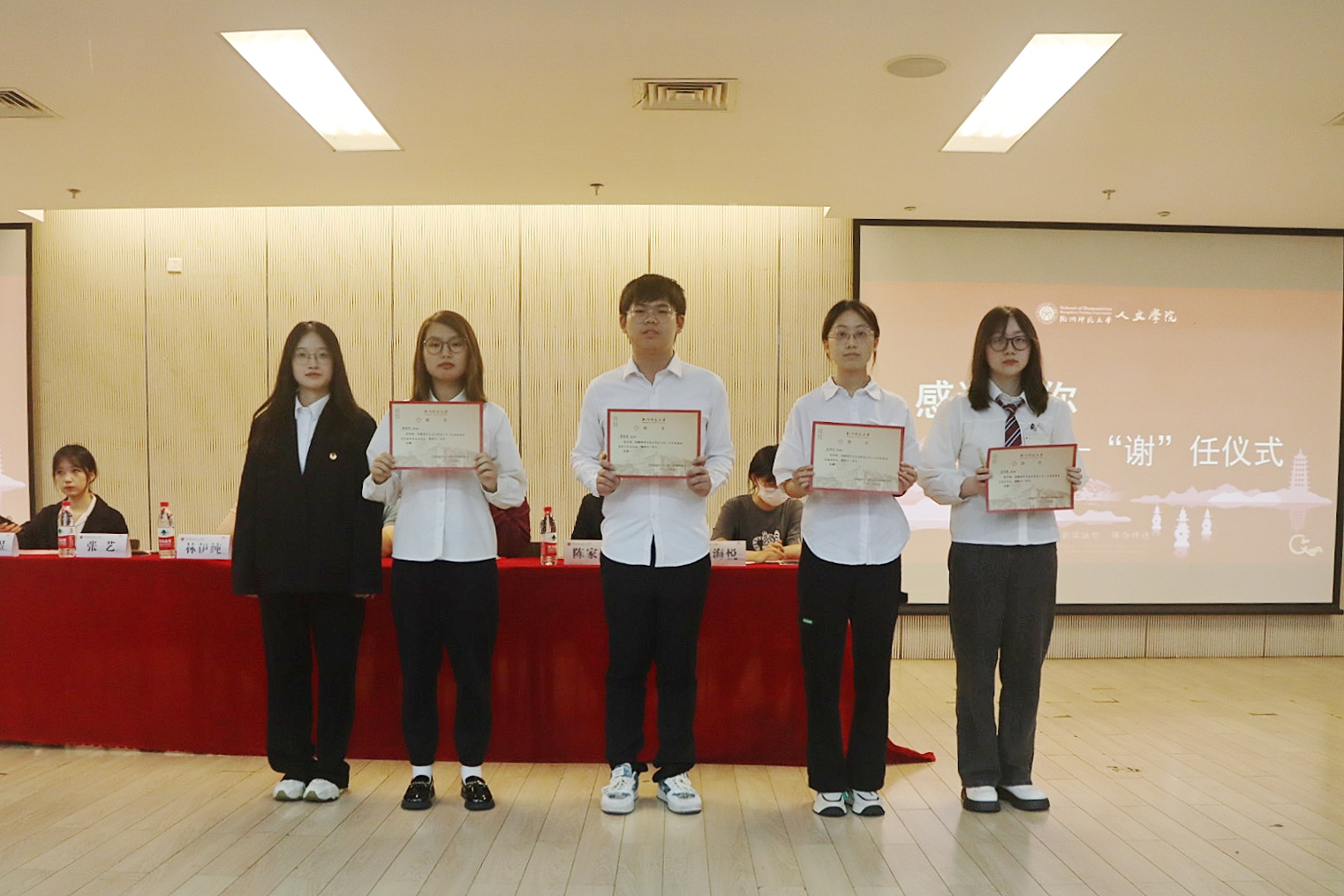 会议期间还进行了主题为“感恩有你”的谢任仪式,意在鸣谢一年以来在学院团委学生会、研究生会作出贡献的老一届学生干部及各社团社长,由出席会议的领导嘉宾们为他们颁发证书。