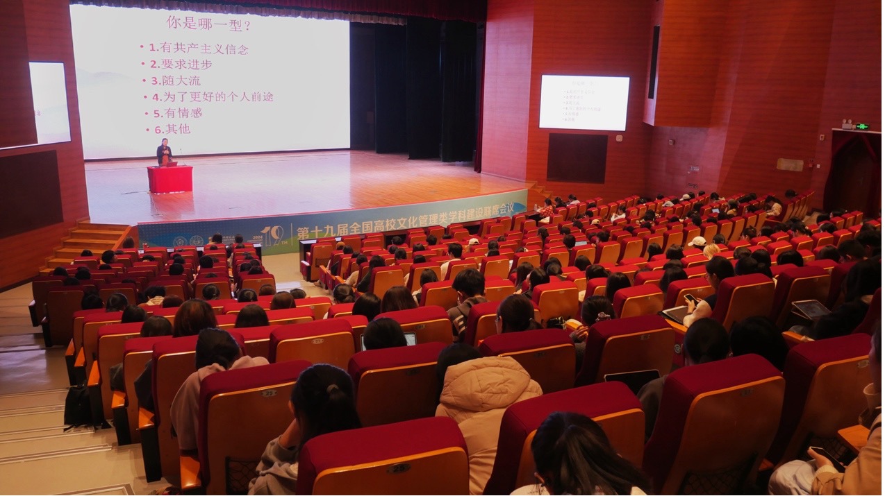 10月30日晚,王淑君老师在梦非剧场面向全体积极分子和发展对象,展开《大学生怎样争做一名合格的共产党员》的党课培训。党课伊始,王老师向同学们提出“为什么要加入中国共产党?”这一问题,引发了同学们对于自身入党初衷的思考。经过简短的师生互动,王老师结合中国共产党发展过程中落实奋斗目标的具体案例,向同学们明确了正确的入党动机。紧接着,王老师又围绕“怎样才可以入党?”这一问题展开讨论,以纪律条例和先进事迹代表为例,要求同学们“不忘初心”,以实际行动积极向党组织靠拢。专心,一心一意坚守对党的忠诚和热爱,肩负高度责任感;上心,坚持学习党的理论和路线方针,增强党性修养;用心,真心诚意为人民服务,精益求精;净心,以清正廉洁之作风,始终保持共产党员的先进性和纯洁性;齐心,团结一心共同为党的事业奋斗,发挥集体智慧;关心,心系党和人民的利益,为人民群众排忧解难。最后,王老师向各位同学表达了加入中国共产党的殷切希望,同学们也纷纷表示,今后将以更饱满的热情和更踏实的作风投入学习工作中去。