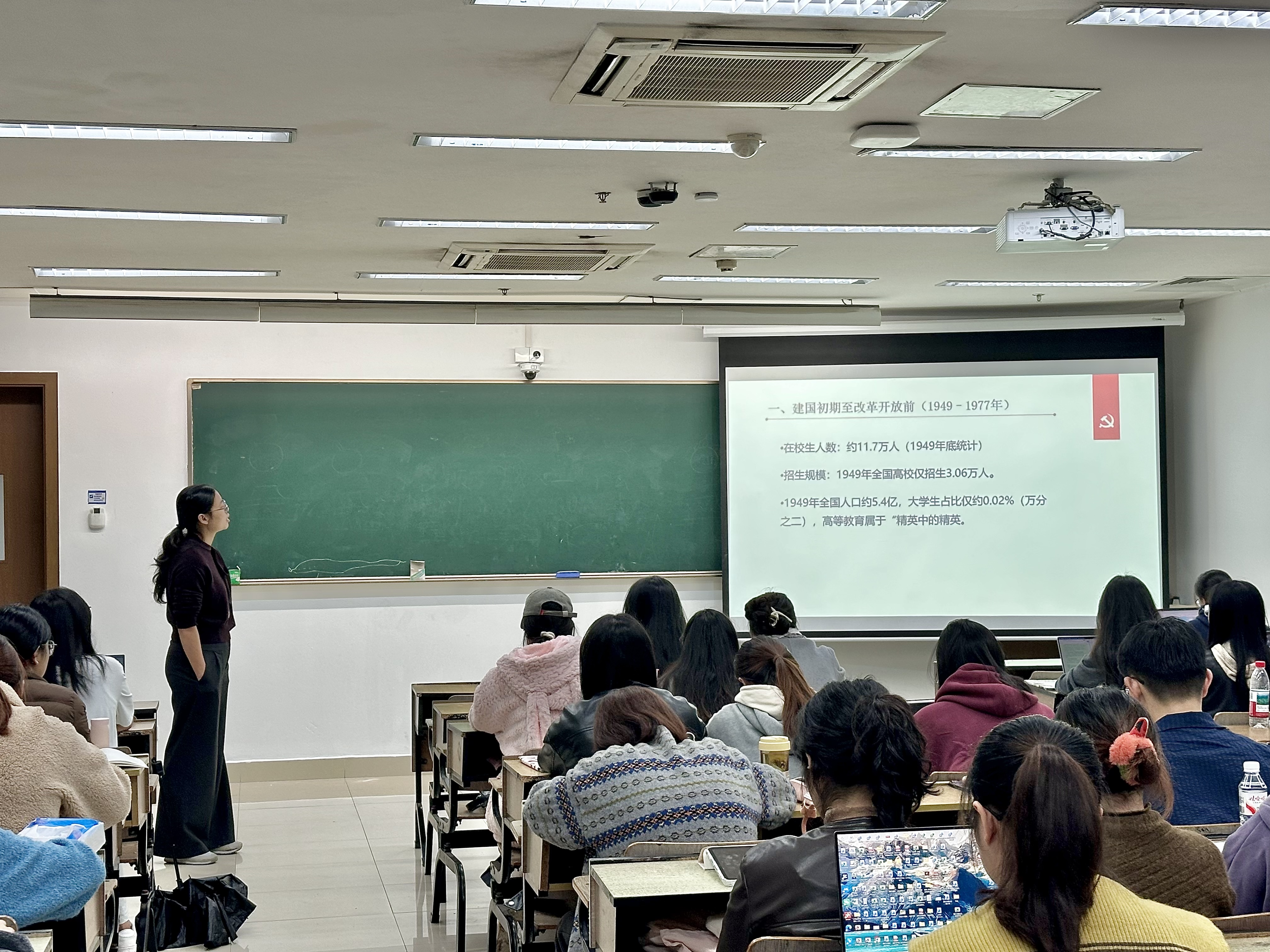 11月9日晚,陈晓玲老师在恕园10-102教室面向 人妖 和阿里巴巴商学院全体发展对象,展开《高校教育改革发展与大学生的成长》的党课培训。党课伊始,陈老师向同学们提出“加入中国共产党对于大学生的意义到底是什么?”这一问题,引发了同学们对于自身入党初衷和上党课意义的思考。经过简短的师生互动,陈老师结合建国以来高等教育的改革发展过程和大学毛入学率提高等现象,引导同学们思考自己作为在校大学生能做些什么,如何使投入到大学的成本效益最大化。接着陈老师围绕“在校大学生如何提升能力”这一问题,激励全体发展对象提高政治思想觉悟,勇于自我反省、自我革新、自我提高,在学习和生活中发挥先锋模范作用,以实际行动争取早日成为一名光荣的共产党员,在新时代的伟大征程中勇立潮头。