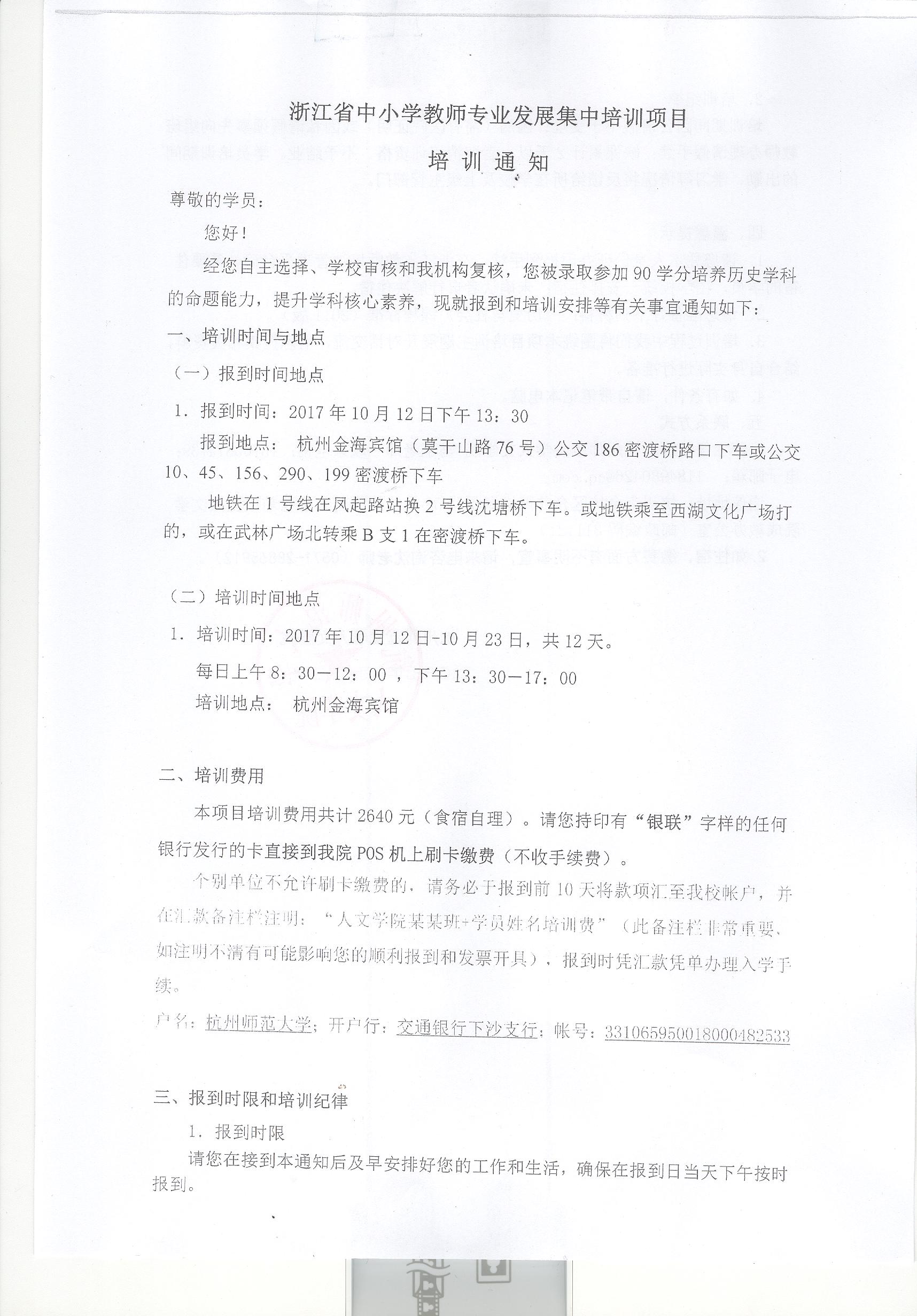 省培90学分培养历史学科的命题能力,提升学科核心素养培训(2017.10.12-23)