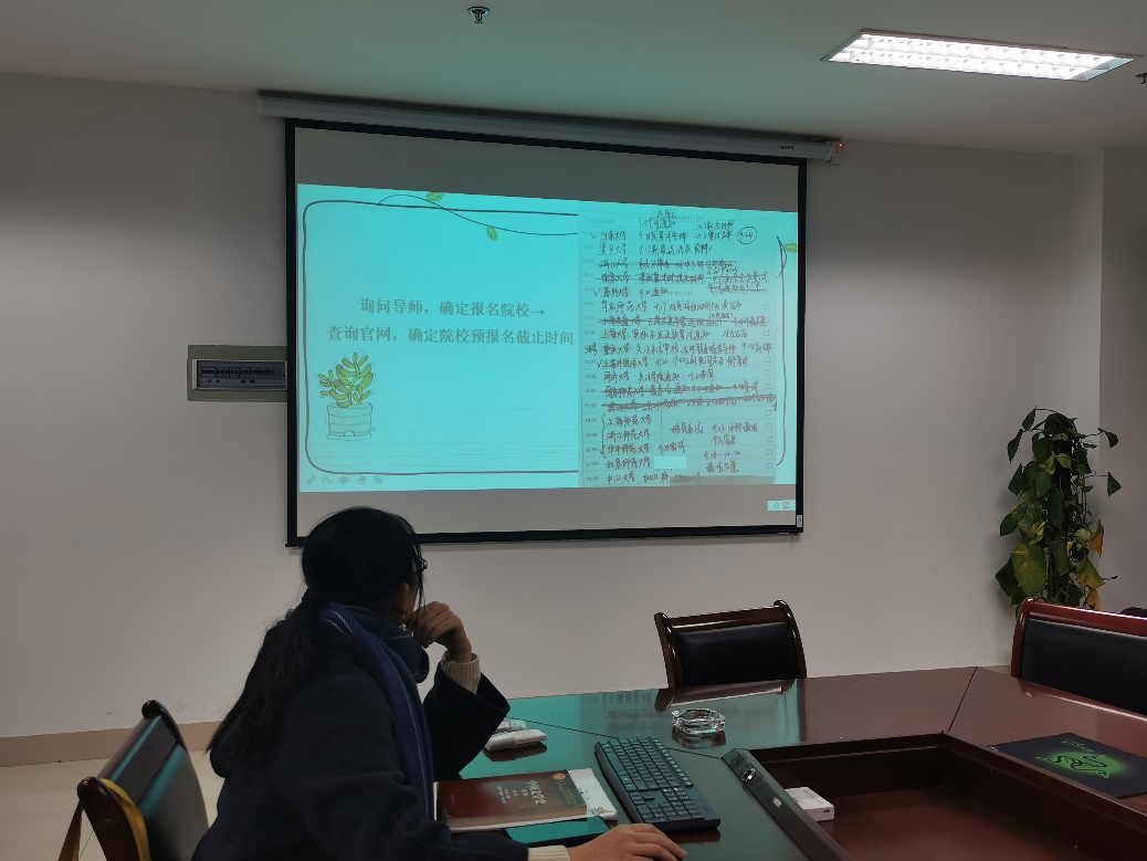 党员姜琪于近日以优异的成绩保研至华中师范大学,她切实发挥党员的引领示范作用,将保研和考研的经验悉数分享给支部党员。宣讲过程中,姜琪分析了保研的细则和考研的前期准备,归纳了“倒排时间表”和“四轮背书法”的实用法则,着重强调了不断自我检测和积极调整心态的重要性。