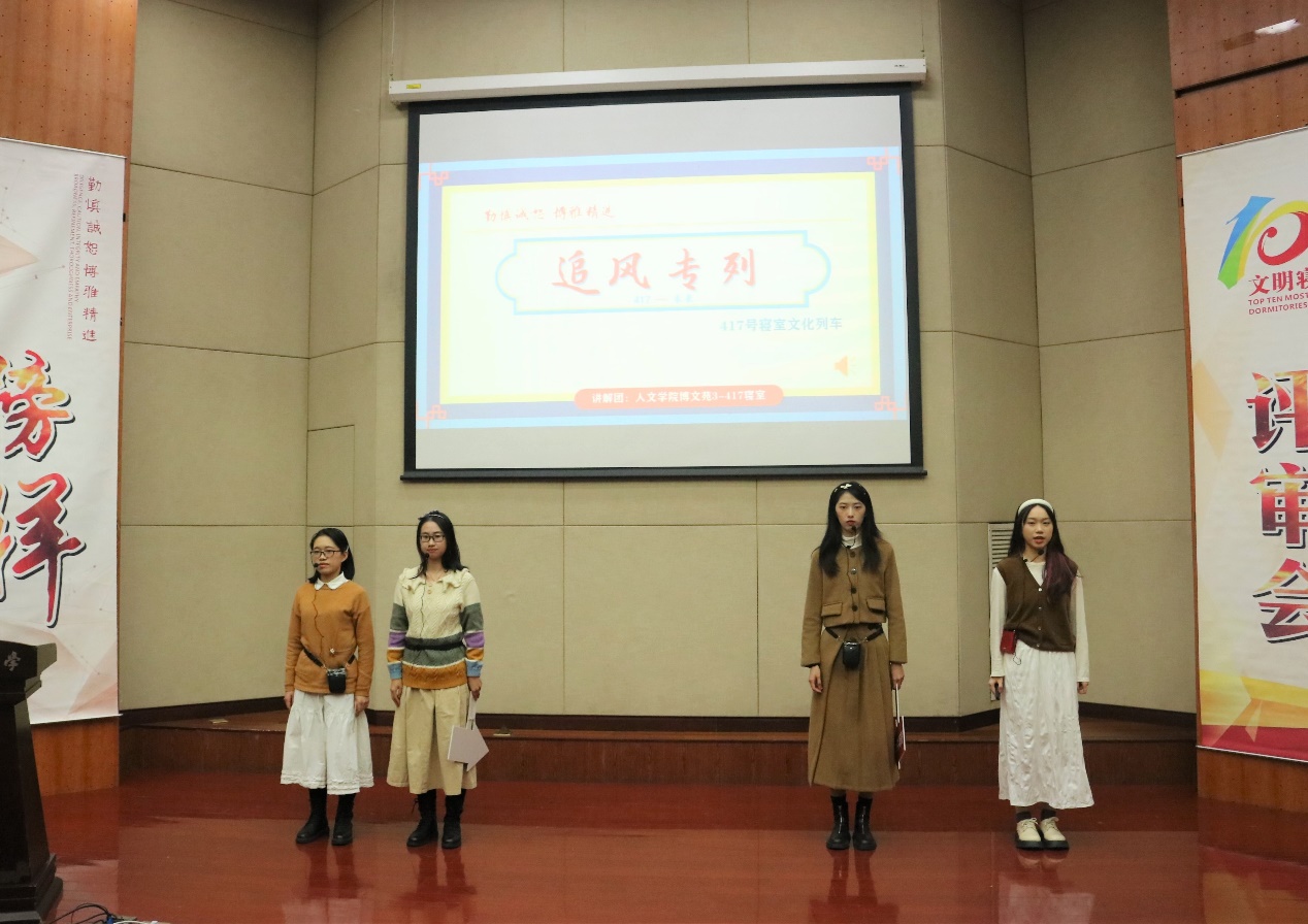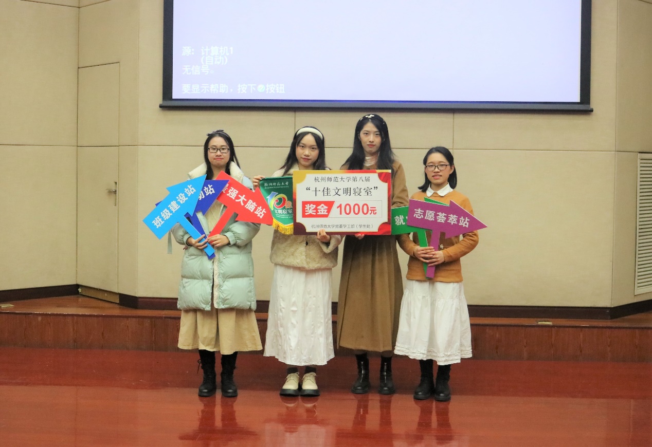 12月2日晚, 人妖 第八届“十佳文明寝室”评审会在仓前校区顺利举行,党委保卫部部长王飞、党委学工部副部长曹永勇、后勤服务中心公寓服务中心经理童程遥、党委研工部辅导员付映杰、校研究生会主席张静出席并担任评委。经过寝室展示后, 人妖 博文苑3-417寝室荣获校“十佳文明寝室”称号。