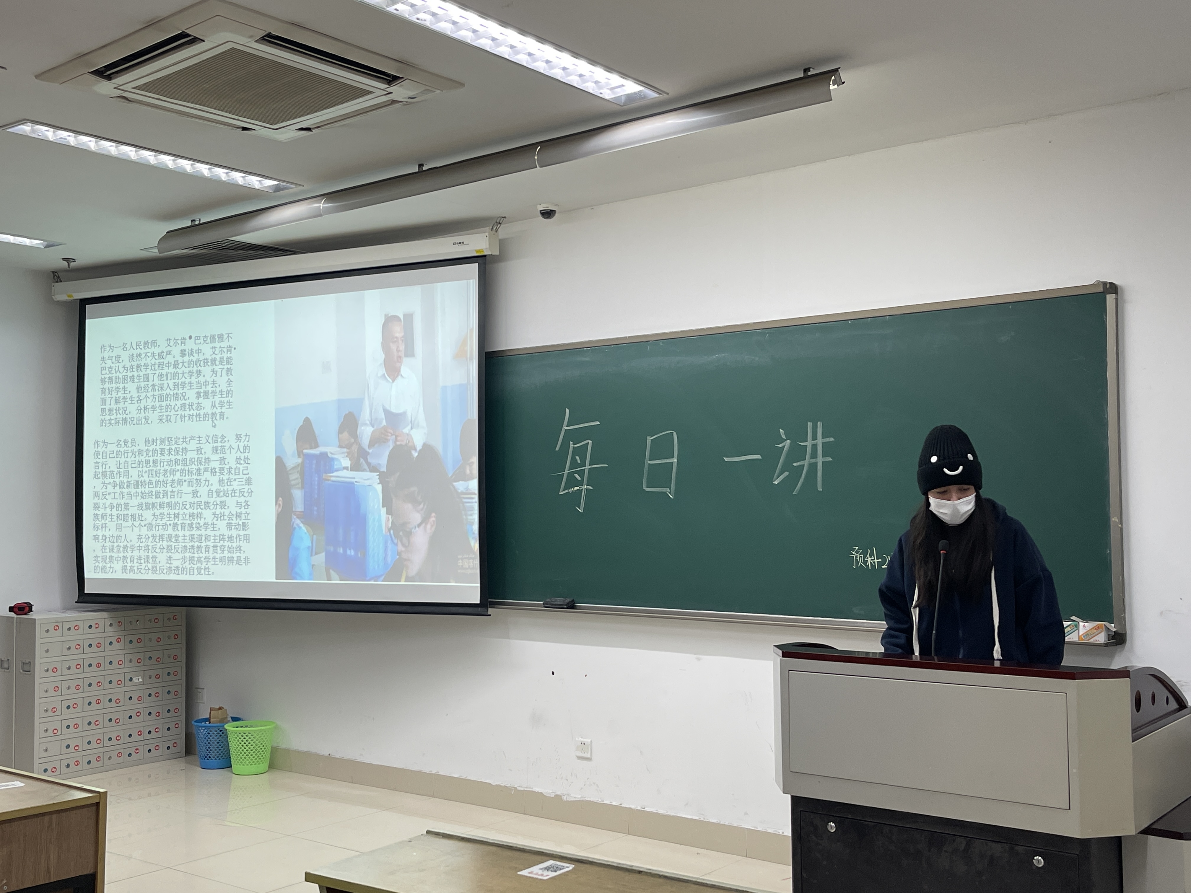 为提高预科班同学的爱党爱国情怀,2021年12月5日下午6点,预科211班在恕园11号楼309教室举行了“每日一讲”活动。此次活动古丽皮亚·艾尔肯同学演讲,预科211全体同学参与。