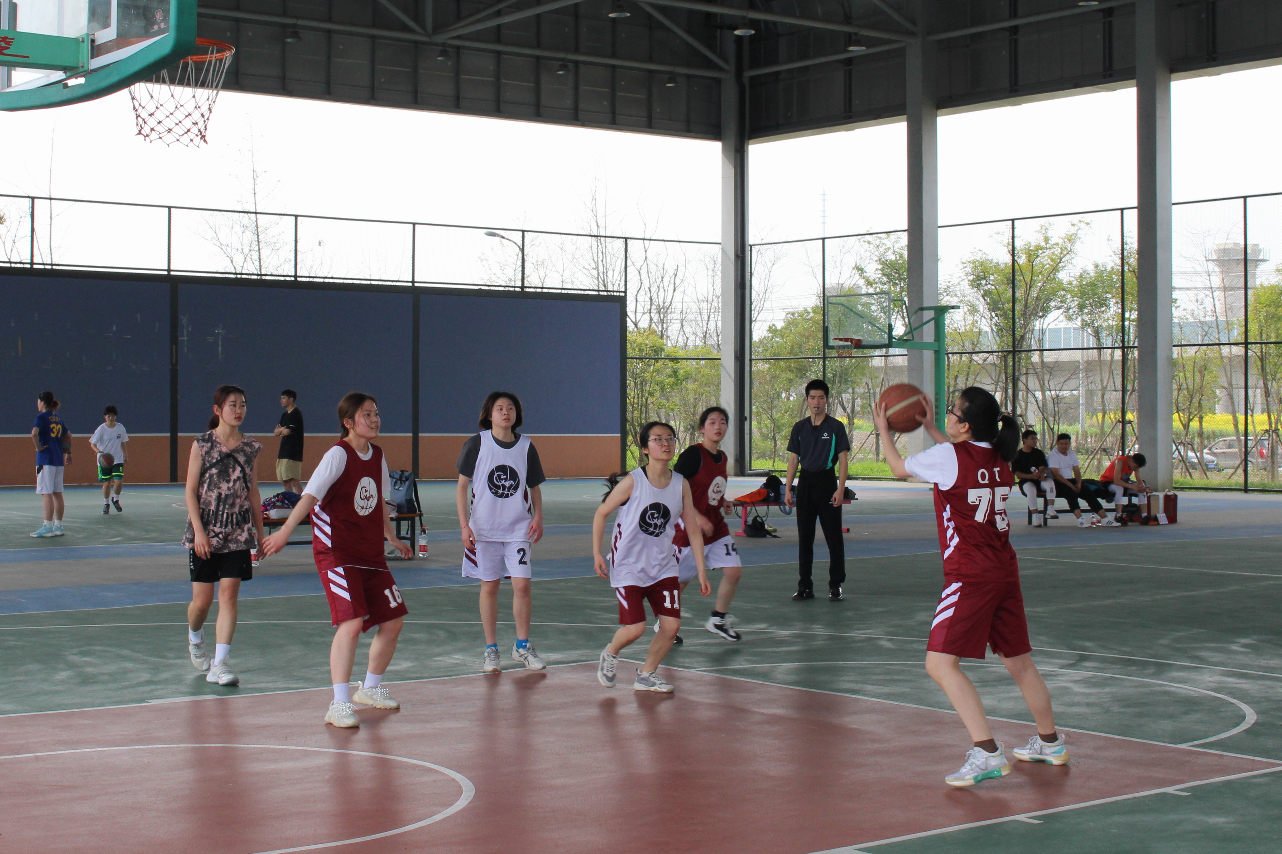 上半场为女子篮球3v3半场比赛,研究生与本科生混组为两队进行比拼。虽然混组的队员们在赛前并不熟悉,但在篮球赛的热血氛围下,她们以最快的速度完成了磨合,充分发扬团队精神,在赛场上挥汗拼搏。最终,在来自研究生院钱雨婷队长的带领下,红队以7:1的成绩赢得了比赛的胜利。