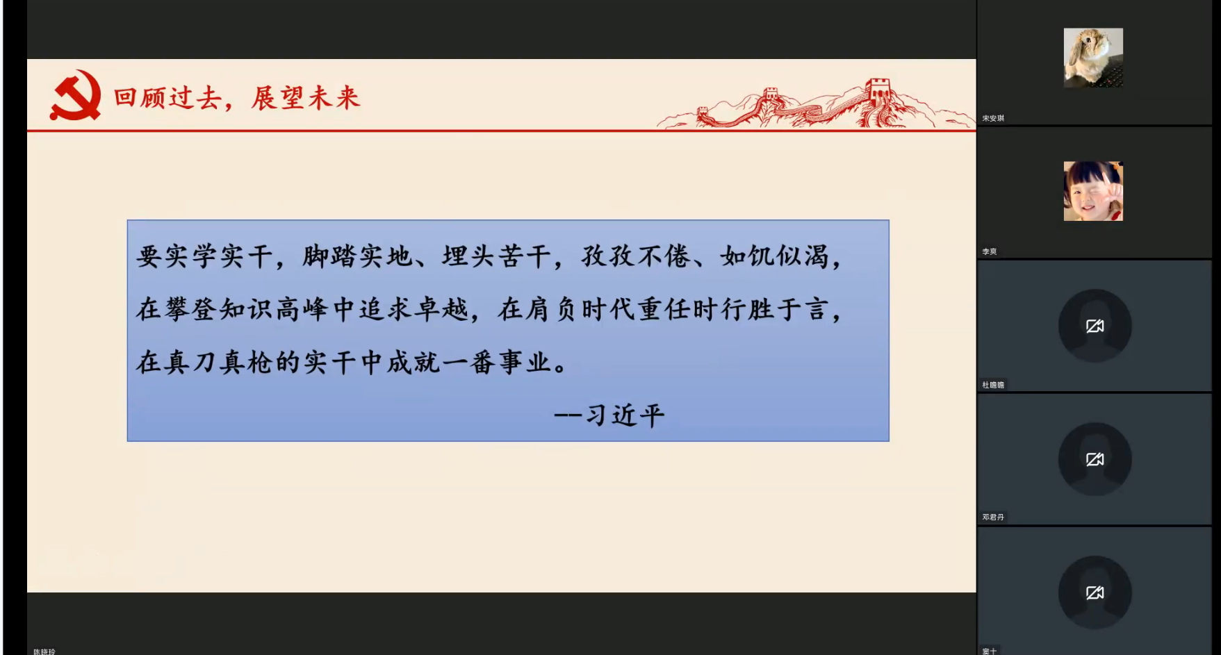 研究生第二党支部4月党日活动于2022年4月15日下午17:00在线上钉钉平台开展。本次党会以“抓实干,促发展”为主题,以支部书记讲党课的方式展开讨论,支部全体党员参加了此次会议。