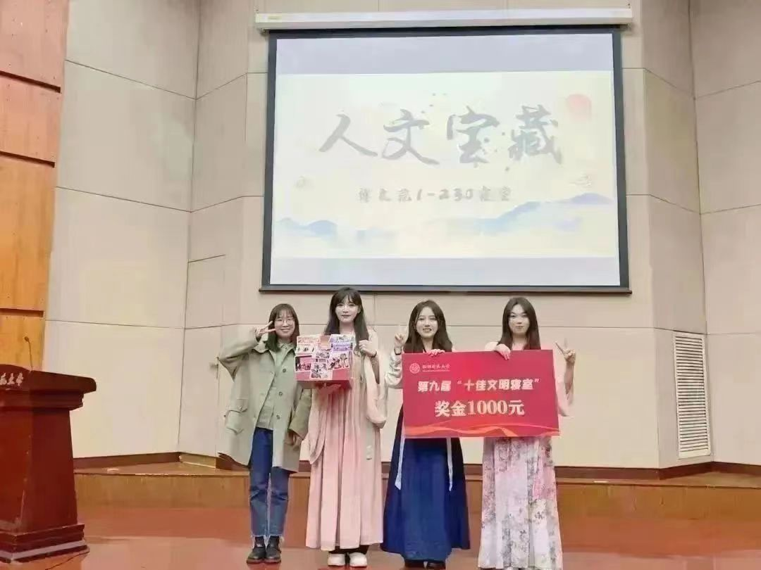 人妖 博文苑1-230寝室荣获校“十佳文明寝室”称号。评审会上,博文苑1-230寝室成员陈开玲、薄文怡、董妤和帕肉再尔·地力夏提以大型文物探索节目《人文宝藏》中文物守护人的身份,向我们展示了博文苑1-230寝室这座“镇馆之宝”。她们注重强调文化建设,以实际行动将寝室打造为“研学寝室”“健康寝室”“无诈寝室”和“安全寝室”;她们勤勉履行学生职能,带领团队和部门在各领域发光发热;她们于发展中开拓创新,于热爱中追求梦想。她们,坚定考研方向,。博文苑1-230寝室中凝聚的互帮互助、团结融洽的寝室文化,为 人妖 寝室文化的建设提供榜样力量,激励着人文学子为建设文明寝室而不懈努力。