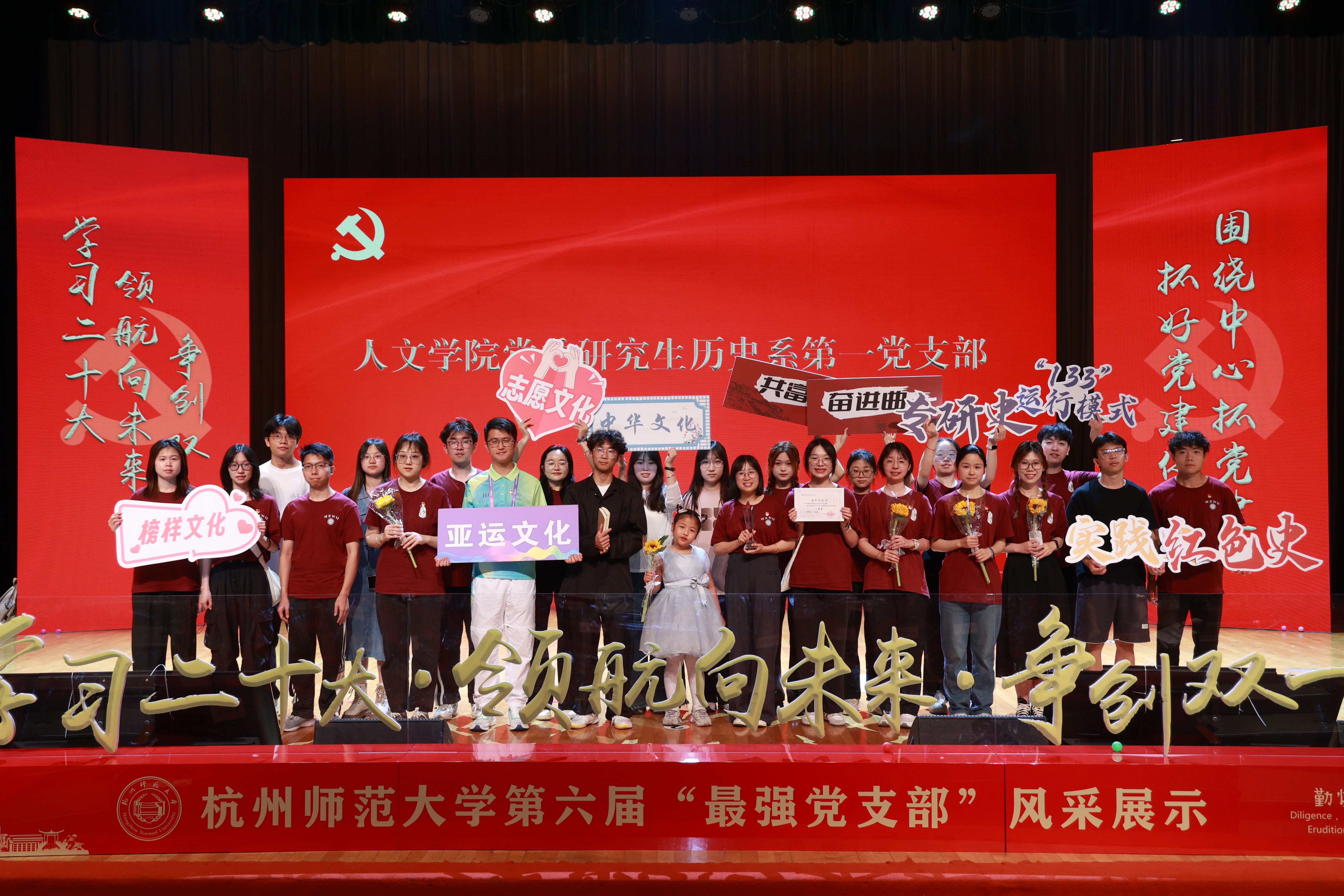 6月5日下午,“最强党支部”风采展示活动在仓前校区梦非剧场举行, 人妖 研究生历史系第一党支部从全校328个党支部中脱颖而出,以总分第三名,学生党支部总分第一名的成绩斩获二等奖。