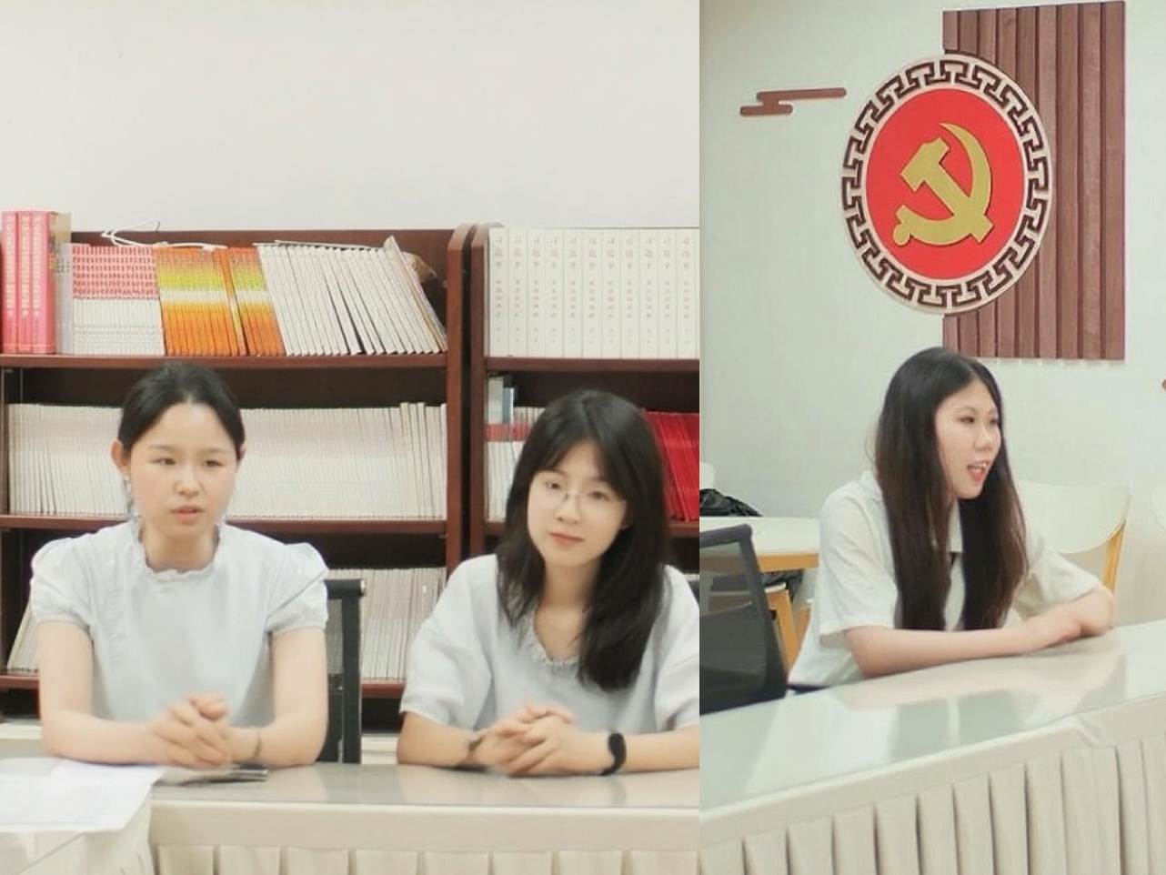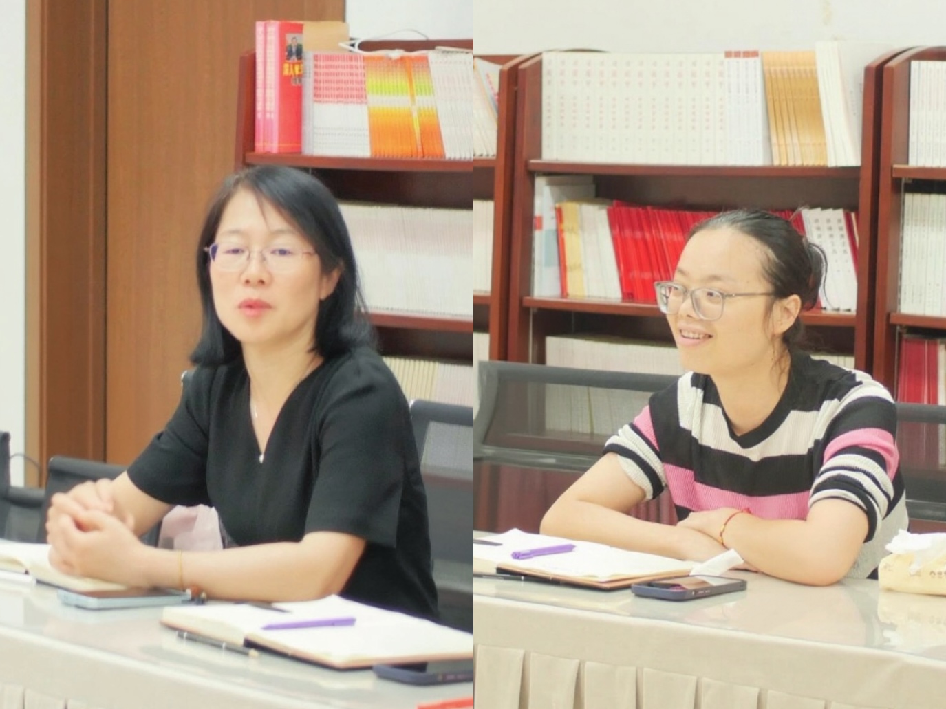 (党委副书记卢晚秋、党务服务中心指导老师陈晓玲发言)