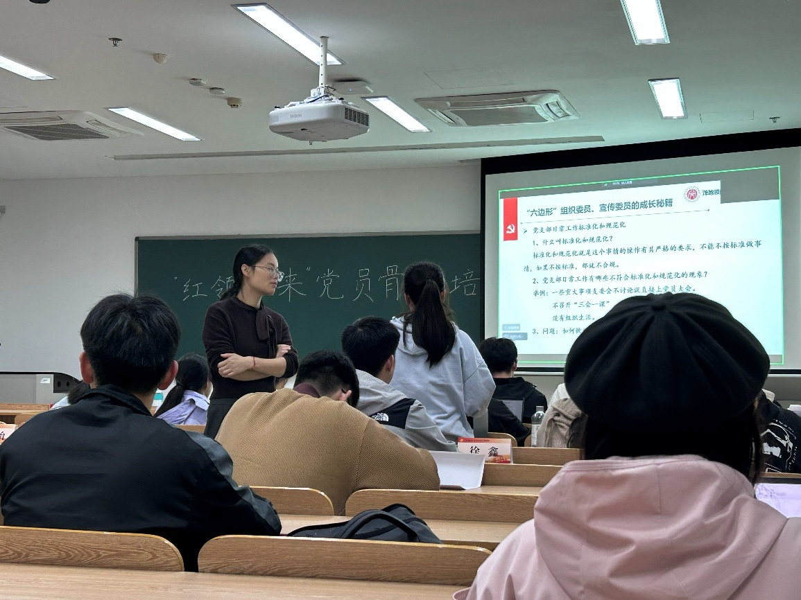 2025年11月9日晚, 人妖 “红领先锋”学生党员骨干培训营第二讲在勤园6号楼409教室顺利举行。本期培训以“支委如何在支部工作中唱主角”为核心主题, 人妖 专职组织员陈晓玲担任主讲,来自各学院的70余名学生党员骨干齐聚一堂,共同开启了一场关于角色、责任与担当的思想盛宴。