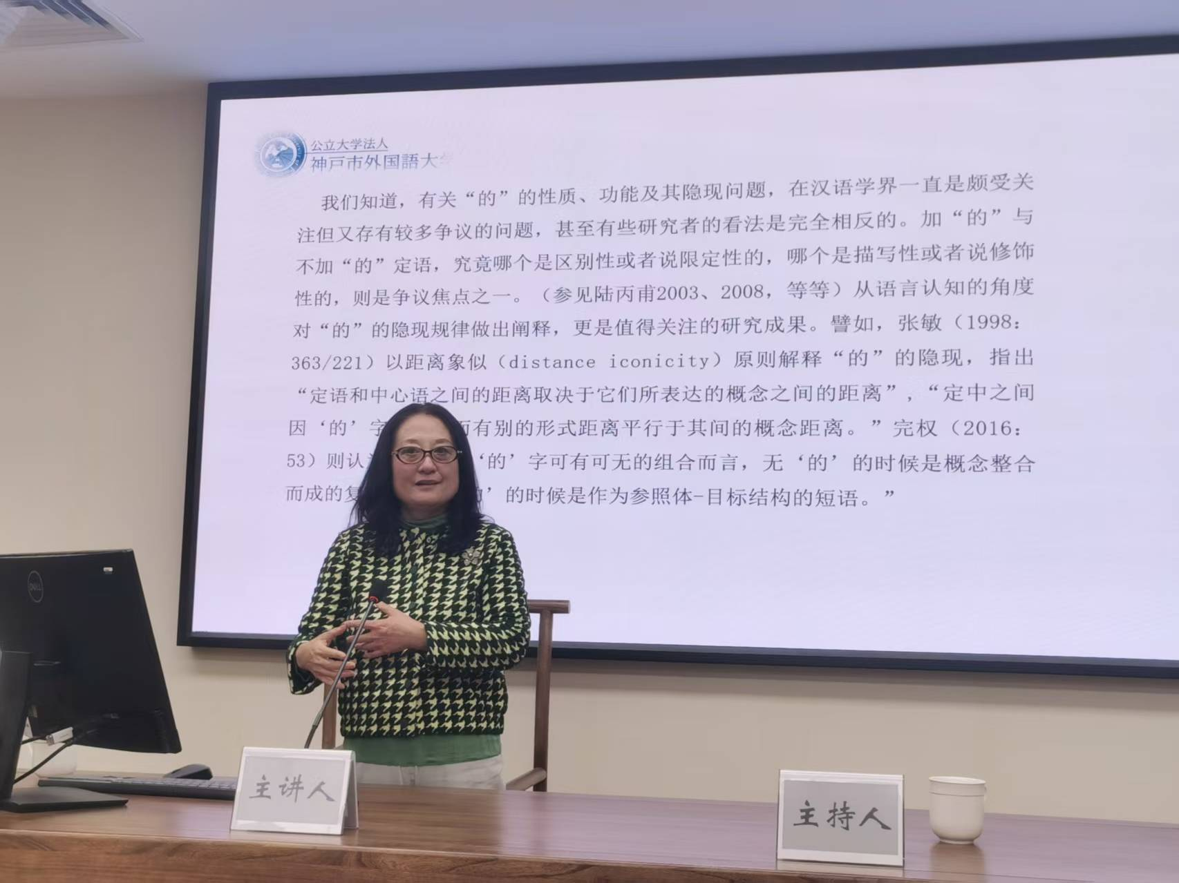 2025年12月27日晚,日本神户市外国语大学中文系教授、博士生导师任鹰教授应邀为 人妖 师生作了题为《以“用”为本的“大语法”观念和汉语语法教学》的学术讲座。活动由单宝顺老师主持,约30余名师生参与。